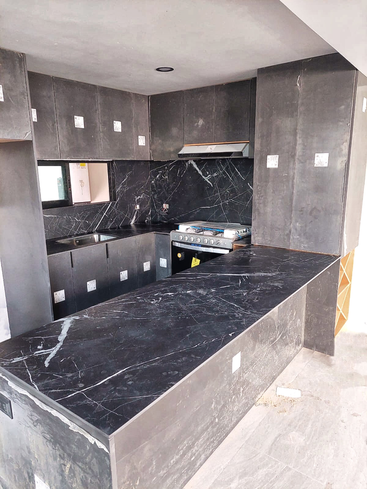Trabajamos con los mejores materiales del mercado como cuarzo, granito y piedra sinterizada para crear espacios funcionales, elegantes y duraderos